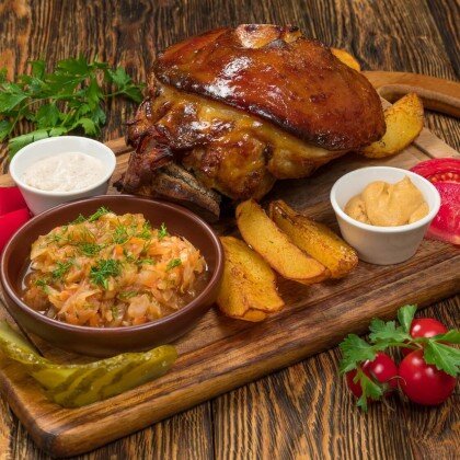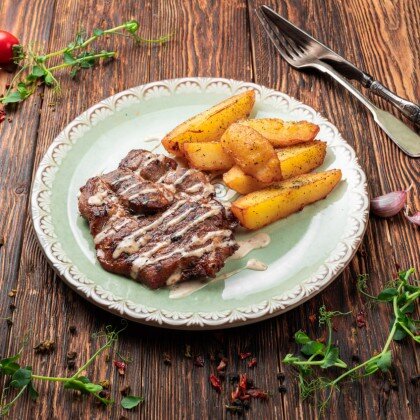 Свиные ребрышки в соусе BBQ с картофельными дольками